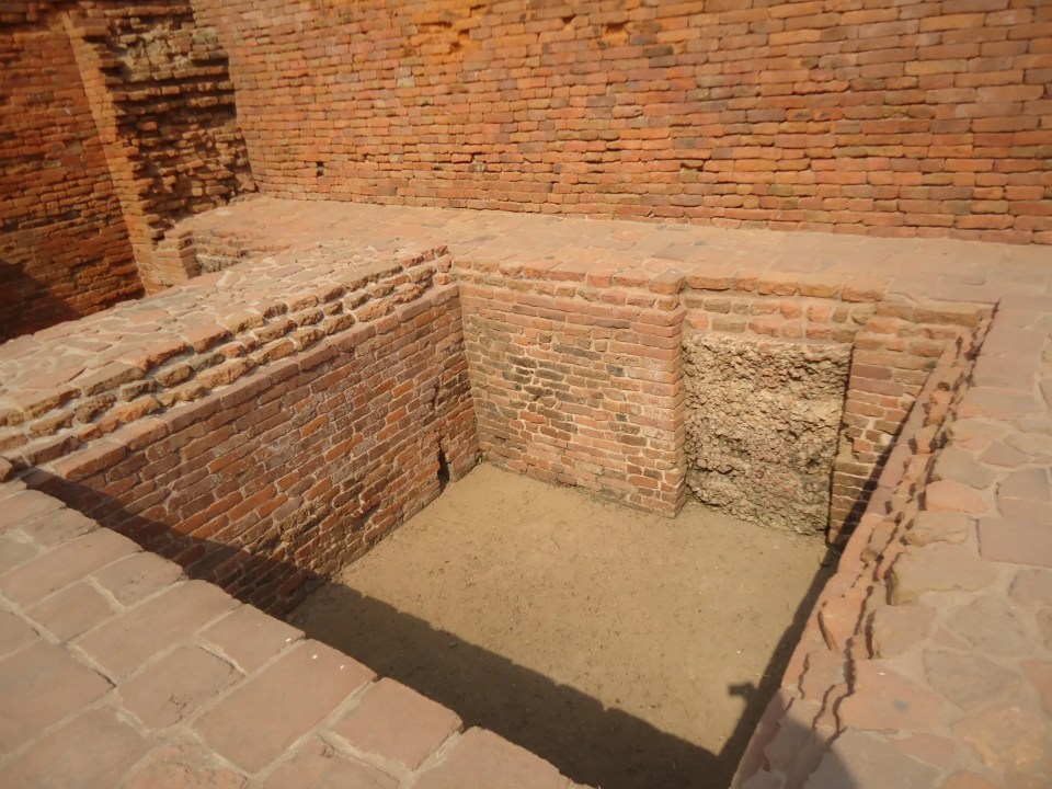 All the monasteries at Nalanda have a similar layout and appearance. A shrine chamber strategically is placed at the entrance of each monastery. This ensures that one sees the shrine as one enters the edifice. The monasteries are rectangular with a central quadrangular court. This is surrounded by a verandah which, in turn, is bounded by an outer row of cells for the monks to stay.